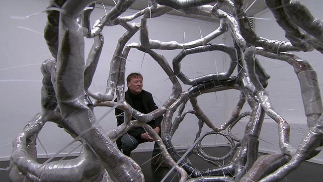Bei 60 kleinen Bildern wiederum lassen sich Seepferdchen entdecken. Eigentlich handelt es sich aber um den seitlichen Handabdruck des Künstlers. Und die Zeichnungen des Künstlers beschäftigen sich mit den Schädeln von Tieren und Geweihen. Sie entstehen quasi als Warm up vor der täglichen Arbeit.